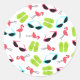 A sticker featuring a pattern of pink flamingos, green flip flops, and pink and blue sunglasses.