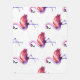 Flamingos and splashes create an artistic watercolor pattern on a white background.