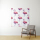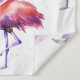 Flamingos and splashes create an artistic watercolor pattern on a white background.