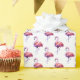 Flamingos and splashes create an artistic watercolor pattern on a white background.
