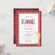 A warm and cosy Flannel and Fizz holiday party invitation featuring a festive red flannel pattern border. The is perfect for your Christmas party featuring champagne.