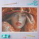 “Tangerine Twenties: The Flapper’s Flamboyance” stands out as a vibrant tribute to the era’s iconic fashion. The artwork features a flapper girl, her attire a cascade of orange sequins that sparkle like a constellation of tiny suns. Each sequin is a pixel of passion, a testament to the unbridled joy and rebellion of the time.