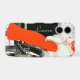 The feature on this unique personalized phone case is of a 1920's era flapper girl wearing a bright red dress and hat, road goggles, and white fur. She is leaning against the front of a roadster and applying her lipstick. The image is placed on a pink and white polkadot background. Your name or other text is added in white on the black front of the roadster, or, if you prefer, you may remove the text by blanking out the field.