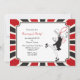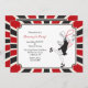 A roaring 20's invitation featuring a flapper dancing. A black, red and white border frames it. (Vecteezy.com retro dancing woman by freevector). The card is easy to customise with your wording, font, font colour, paper shape options and choice of six paper types.
