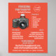Flash Camera Icon, Photographer, Photography Hire Advertising Poster By The Business Card Store.