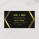 Make a lasting impression with this eye catching and modern business card design featuring cool black geometric graphics with a shimmery yellow background.