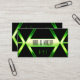 Make a lasting impression with this eye catching and elegant business card design featuring modern black geometric graphics with bright green shimmer background.