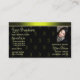 Make a lasting impression with this elegant business card design featuring shimmery black and yellow gradient borders and monogram pattern on a black background.
