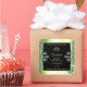 Matching a shimmery light green frame and cute hearts graphic on a black background.