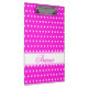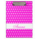 Flashy Pink With Cute White Hearts, Custom Name Clipboard