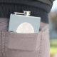 The flask itself is fine. It’s a cheap flask, obviously bought in bulk, however am prepared to overlook that. Given that it is a personalized item, I would have liked to have seen gift boxing instead of the generic packaging. Terrible printing, and/or quality. It’s a cheap, tacky vinyl. It is not cut straight and is also applied in a way that it is overhanging the bottom, causing the glue to catch on items and it will eventually roll and tear, damaging the wrap.