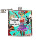 The flask itself is fine. It’s a cheap flask, obviously bought in bulk, however am prepared to overlook that. Given that it is a personalized item, I would have liked to have seen gift boxing instead of the generic packaging. Terrible printing, and/or quality. It’s a cheap, tacky vinyl. It is not cut straight and is also applied in a way that it is overhanging the bottom, causing the glue to catch on items and it will eventually roll and tear, damaging the wrap.
