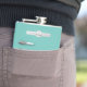 The flask itself is fine. It’s a cheap flask, obviously bought in bulk, however am prepared to overlook that. Given that it is a personalized item, I would have liked to have seen gift boxing instead of the generic packaging. Terrible printing, and/or quality. It’s a cheap, tacky vinyl. It is not cut straight and is also applied in a way that it is overhanging the bottom, causing the glue to catch on items and it will eventually roll and tear, damaging the wrap.