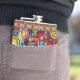The flask itself is fine. It’s a cheap flask, obviously bought in bulk, however am prepared to overlook that. Given that it is a personalized item, I would have liked to have seen gift boxing instead of the generic packaging. Terrible printing, and/or quality. It’s a cheap, tacky vinyl. It is not cut straight and is also applied in a way that it is overhanging the bottom, causing the glue to catch on items and it will eventually roll and tear, damaging the wrap.