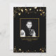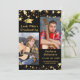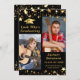 Graduation announcement in editable black and gold with gold stars and two THEN and NOW photos on the front with the suggested title LOOK WHO'S GRADUATING. Optional additional information about your graduate can be included on the back along with another photo. CHANGES: You can change the background colour or text font style, size, colour or placement by clicking CUSTOMIZE FURTHER. PHOTO TIP: For fastest/best results, choose a photo with the subject in the middle and/or pre-crop it to a similar shape as shown BEFORE uploading and it will fill the photo space perfectly. Contact the designer via Zazzle Chat or makeitaboutyoustore@gmail.com if you'd like this design modified, on another product or coordinating items.