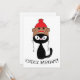 Flat Card Check Meowt Black Cat w/ Sock Monkey Hat