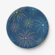 Colourful New Year's Eve celebration party pattern paper plates in flat style with colourful fireworks elements.
