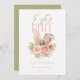 Beautiful and elegant Easter brunch and egg hunt invitation. The design features cute bunny ears with pink flowers and green leaves. The background is white. The back side is solid matching lime green with a little bouquet of Easter eggs. Personalise it for your needs.