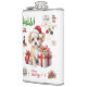 The flask itself is fine. It’s a cheap flask, obviously bought in bulk, however am prepared to overlook that. Given that it is a personalized item, I would have liked to have seen gift boxing instead of the generic packaging. Terrible printing, and/or quality. It’s a cheap, tacky vinyl. It is not cut straight and is also applied in a way that it is overhanging the bottom, causing the glue to catch on items and it will eventually roll and tear, damaging the wrap.