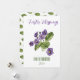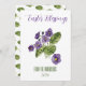 Purple violets from original watercolor floral botanical. Easter Blessings saying. Name place and date. Back of card purple. Traditional style with vibrant colours.