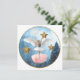 Card with a whimsical image of a young girl with angel wings dancing in a starry winter sky.