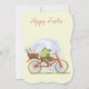 Flat Holiday Card "Happy Easter" with a picture of a bunny on a bicycle.