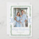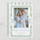 Grandmillenial Classic Watercolor Christmas Garland with Blue Bow Christmas Card - Editable Text