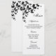 This Menu Card template is shown on the linen white paper with a black butterflies print. Script and standard text in Black.