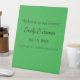 It is sturdy than I expected. Was worried about the material being flimsy but it is not. It is printed on some sort of plastic material. It should serve well at our wedding as long as wind isn’t too bad. Otherwise we will put some paper weights behind it and should be fine.