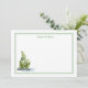 This custom name flat note card is shown with a floral print and has a double border in colours of green and grey.