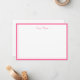 Custom name flat note card is shown in white with a slim hot pink trim.
