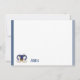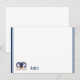 Flat note card is shown in white with a slim navy blue double border trim and has the horoscope sign Aries.