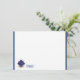 Flat note card is shown in white with a slim navy blue double border trim and has the horoscope sign Virgo.