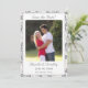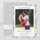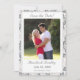 This design encompasses the essence of elegance. A champagne-pink background image of delicate lace surrounds a rectangular background to the photo you supply. Heading is displayed in a silver-coloured Nuptial font above photo. Names of Bride and Groom are displayed below photo in same Nuptial font. Date of wedding plus city and state are featured below names. Reverse features a silver-coloured background. Top corner displays initials of Bride and Groom linked together at top left corner. Room for bridal registry information is featured at bottom against a white strip. Designed to coordinate with the Champagne-Pink Lace Catholic Wedding Suite.