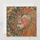 This image is a hand-painted artistic representation of the lion from the Sri Lankan flag. The style is reminiscent of mediaeval or heraldic art, with a stylised, almost fiery, rendering of the lion and its mane. The lion is depicted in shades of orange and red, with gold highlights emphasizing the details of its mane and the ornate sword it holds. The sword itself is richly detailed with swirling patterns, suggestive of craftsmanship and artistry.