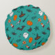 Flat-Style Halloween Turquoise Pattern. Round Cushion