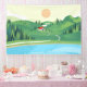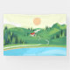 Illustration in flat style of house in the hill with lake and forest near beautiful landscape illustration