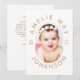 A modern design featuring your favourite photo in a cute oval shape surrounded by your baby´s name and birth stats in simple beige typography. The reverse features your custom message. Personalise this unique, minimalistic baby shower thank you / birth announcement photo card by clicking on the ´´Personalise´´ button!