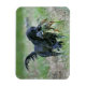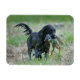 A wet Flatcoated Retriever returning a duck to it's master on a flexible photo magnet.