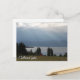 Take in this gorgeous view of Flathead Lake in Montana. The sun is shining through the clouds with mountains in the background. On the lake shore are tall evergreen trees and a traditional red barn. A beautiful image of some of Montana's scenic landscapes. Get this postcard for a friend or for your self.