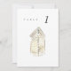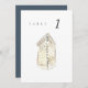 Chic wedding table number seating cards featuring a watercolor painting of New York City's Flatiron Hotel. The pairing of the painterly watercolor and the chic typography makes for a beautifully fun combo.