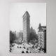 This vintage American History photo features the Flatiron Building, an iconic New York City skyscraper. Vintage automobiles, pedestrians, and horse drawn carriages can be scene on the street. Photo taken circa 1902.