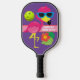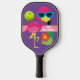 If you're FABULOUS at Pickleball and you know it, then this tropical pink flamingo "Flaunt it if you've got it!" pickleball paddle is sure to give your friends and other players a laugh. It has a purple background on both sides with a light pink and red band across the centre that has customisable wording on both sides. The front says, "Flaunt it if you've got it!" and the back says, "I Dink With Friends". There is a large pink flaming wearing blue and black sunglasses, along with some tropical green leaves and a red hibiscus flower head in the lower right corner and a big neon green pickleball in the upper left. Email niteowlstudio@gmail.com with any request for changes.