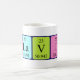 Flavio spelled out as F La V I O (Fluorine Lanthanum Vanadium Iodine Oxygen) on a mug for the scientist in you.