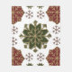 The design features a green and red floral patchwork made of intricately sewn snowflakes, accented with gold trimming.