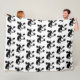 Fleece blanket shown in a colour of White with a cute black and white cow print.