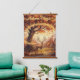 The polyester fabric displayed many wrinkles and several sharp creases throughout. At the bottom of the tapestry, I noticed a bulge in the fabric because it was not pulled tight enough before being connected to the wooden boards. It took me over an hour to spay water on the tapestry before putting it on an ironing board where I used a warm iron over a polyester cloth to remove the wrinkles and creases in the material. I was able to get out the wrinkles and creases that made that tapestry look as beautiful as its picture.
