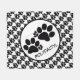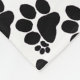 Paw prints of a seven toed (polydactyl) cat, form the central image with "Polydactyl" title beneath. Outside of the white circle are diagonal rows of pawprints in black on white.