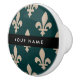 Fleur de Lis, Beige on Green, Royal, Your Name Ceramic Knob