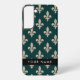 Fleur de Lis, Beige on Green, Royal, Your Name Samsung Galaxy S22+ Case